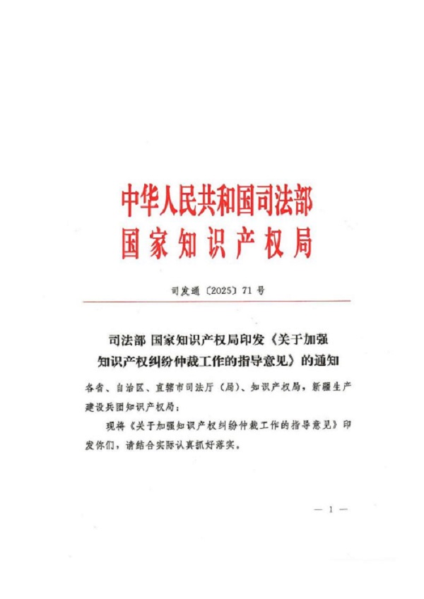 司法部 国知局印发《关于加强知识产权纠纷仲裁工作的指导意见》的通知